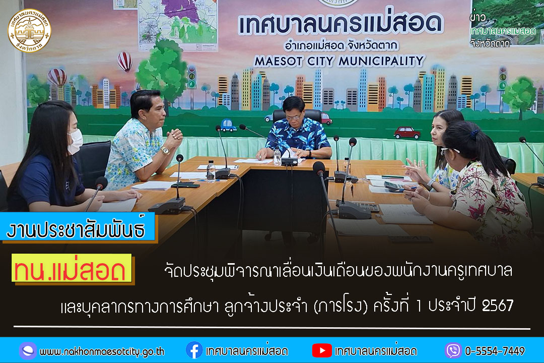 ทน.แม่สอด จัดประชุมพิจารณาเลื่อนเงินเดือนของพนักงานครูเทศบาล และบุคลากรทางการศึกษา ลูกจ้างประจำ (ภารโรง) ครั้งที่ 1 ประจำปี 2567