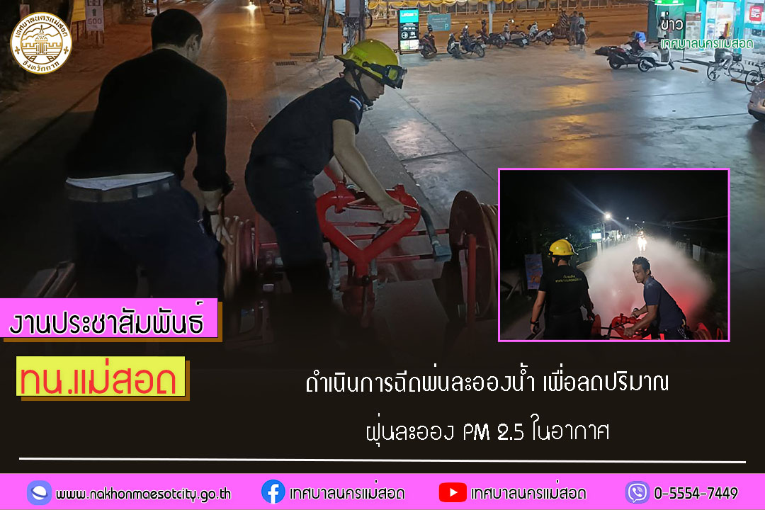 เทศบาลนครแม่สอด ดำเนินการฉีดพ่นละอองน้ำ เพื่อลดปริมาณฝุ่นละออง PM 2.5 ในอากาศ